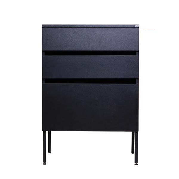 Outro recurso essencial é o suporte para secador de cabelo, que mantém o equipamento seguro e sempre à mão, prevenindo quedas ou movimentos indesejados. A estrutura da bancada também é reforçada com pés em metal resistente, equipados com sapatas niveladoras que permitem ajustar o nível da bancada conforme necessário, garantindo estabilidade em qualquer ambiente.